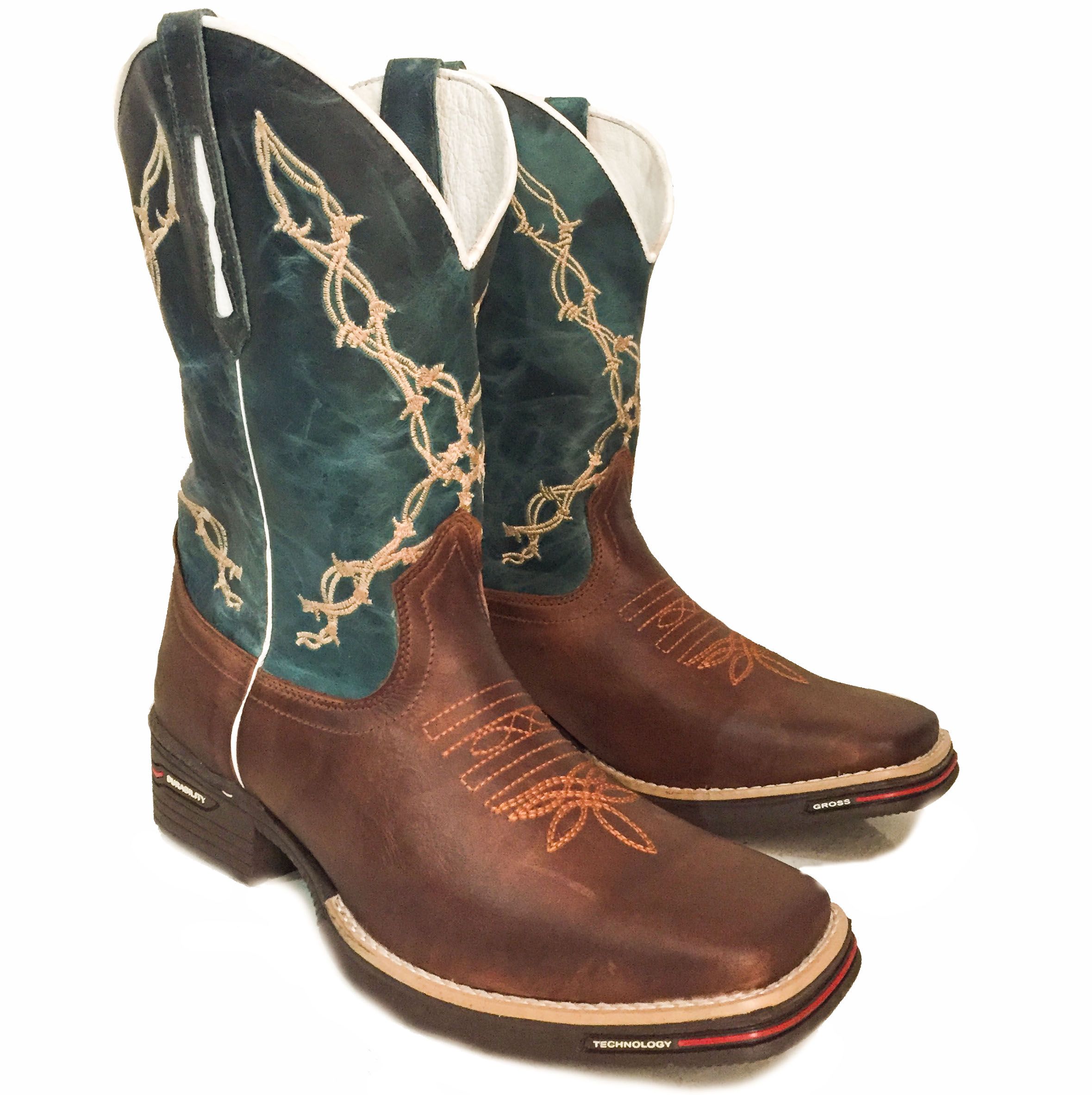 Bota Texana Cano Azul Farpado Durability Bico Quadrado