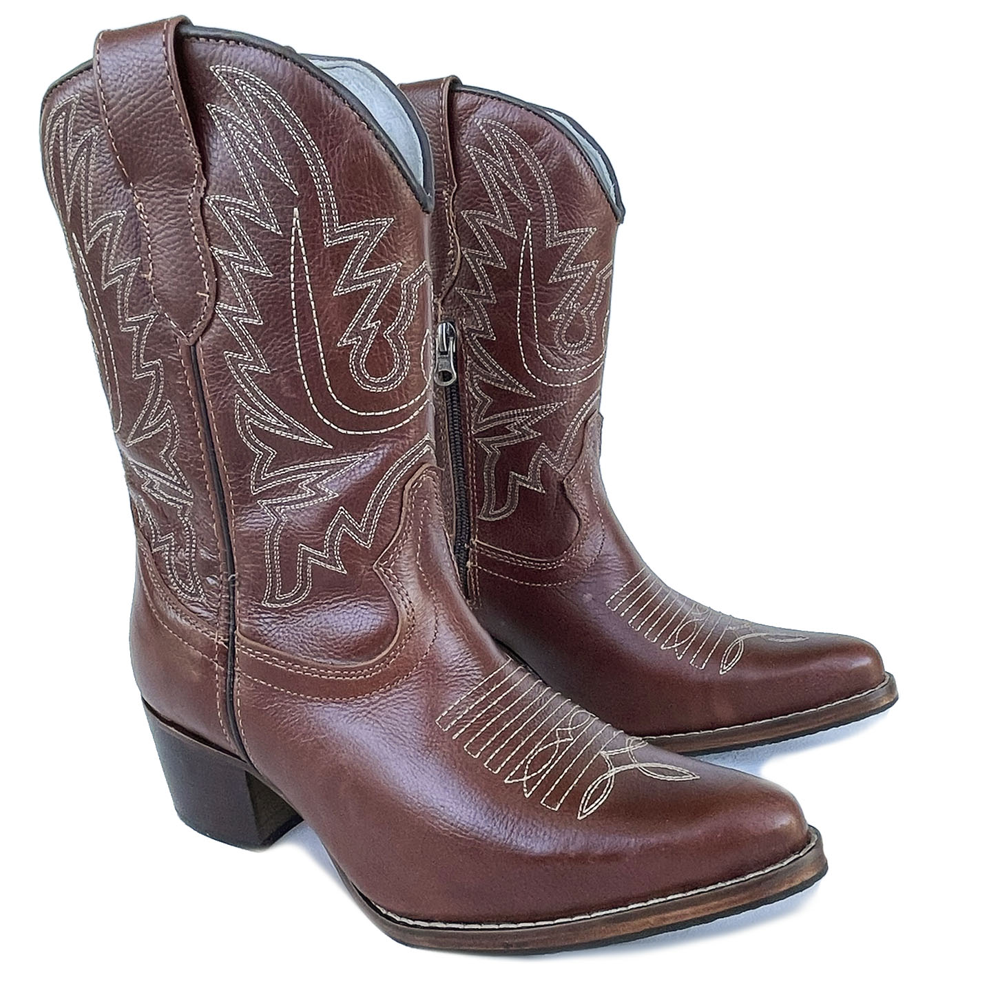 Bota Texana Feminina Choup Cano Médio Café Bico Fino