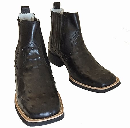 Botina Estampa Avestruz Preto Sola Preto Bico Quadrado