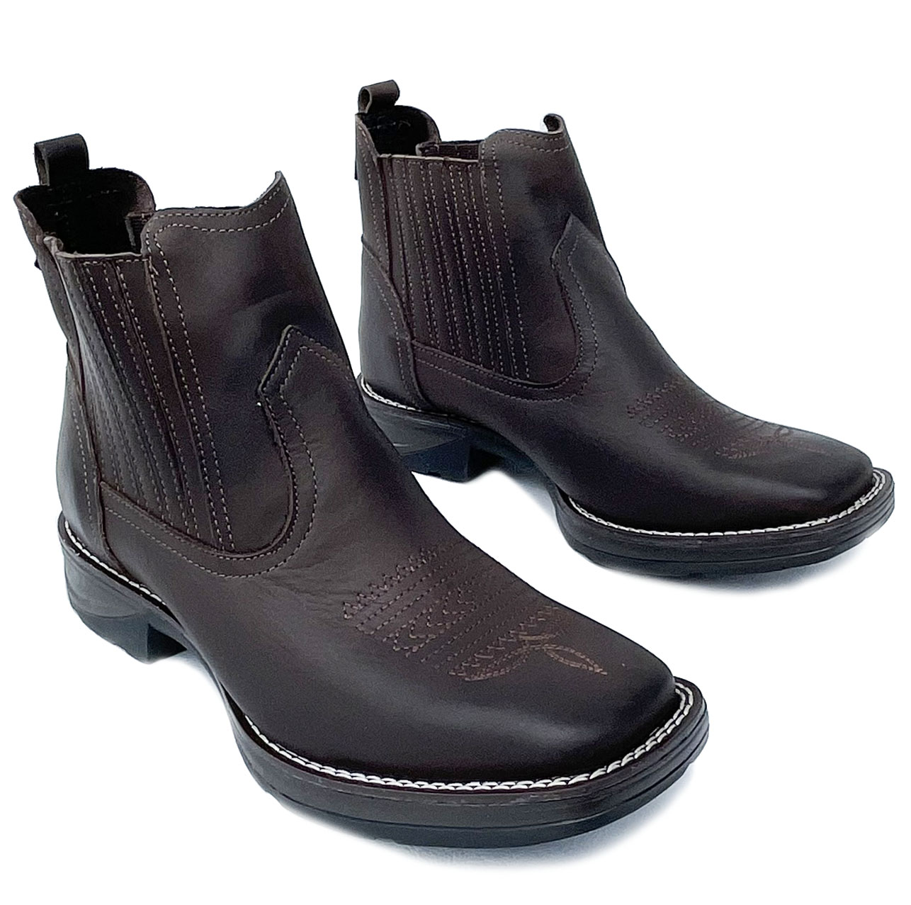 Botina Texana Café Sola Jump Preto Bico Quadrado